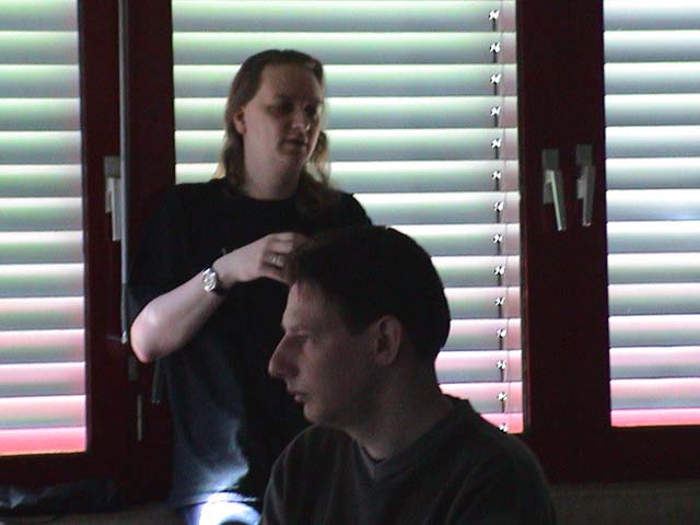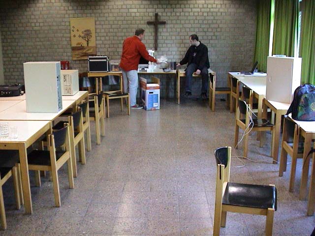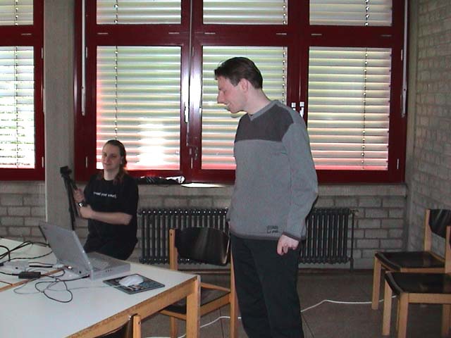That night some people went off to watch a movie on the beamer (it was better than everyone being crammed around a PC) while Peter grabbed the video I had of a previous BeGeistert (005 uncut!) and made it into a quicktime then DVD movie. This took a while as the tape is an hour long and after recording it we discovered the recording mode of my camera was incompatible with his camera. It proved popular as a few people wanted copies.