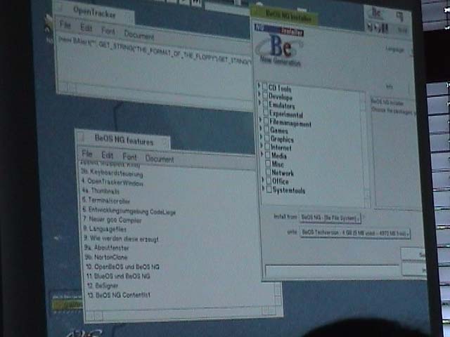 While the presentation was in German there was also a visual display on the beamer and we could see the installer and all what it can install. This is a very big collection as it not only includes BeOS personal edition but appears to also include pretty much all of Bebits! All neatly packaged in the installer at 49 Euros it'll be well worth it even without an OS. If you ever get bored there are dozens of emulators so you can play with other systems as well.