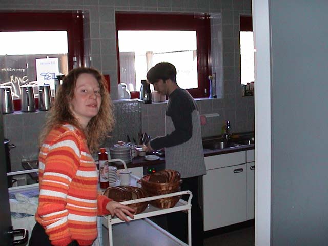 There were the usual smattering of computers sitting around along with the obligatory network. Interestingly, by far most this time most were laptops, and all but one of the rest had LCD monitors. I guess everyones got fed up lugging heavy PCs around! There was even a new iMac present (the weird looking one) and Peter kindly gave me a lesson in video editing OS X style (the iMac belongs to his wife Nadja who was also there), just plug in the camera, grab the footage and start editing, very easy. I want a Mac.