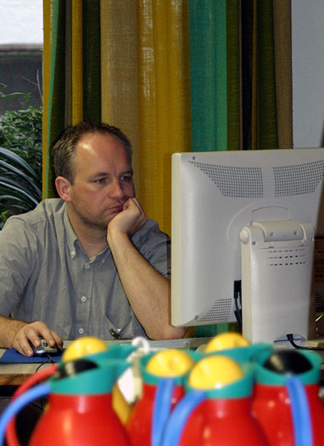 Of course with film cameras when you run out of film you just reload, no worries about needing to download your pictures or recharge your batteries. My CF card was nearly full on Saturday night but not having a computer with me I had to get the pictures off it. I knew Macs could recognised my camera without any special drivers so Peter and Nadia Stegemann allowed me to use their iBook to download the images. Then I had to find a way of keeping the images but their iBook didn't have a CD-Burner so I transferred the pictures to Marcus' PC, he didn't have a burner either but he did have a FTP server so I could then move the pictures to anywhere else. Eventually I found Francois had a burner so I got the pictures transferred again and finally burned to CD.
