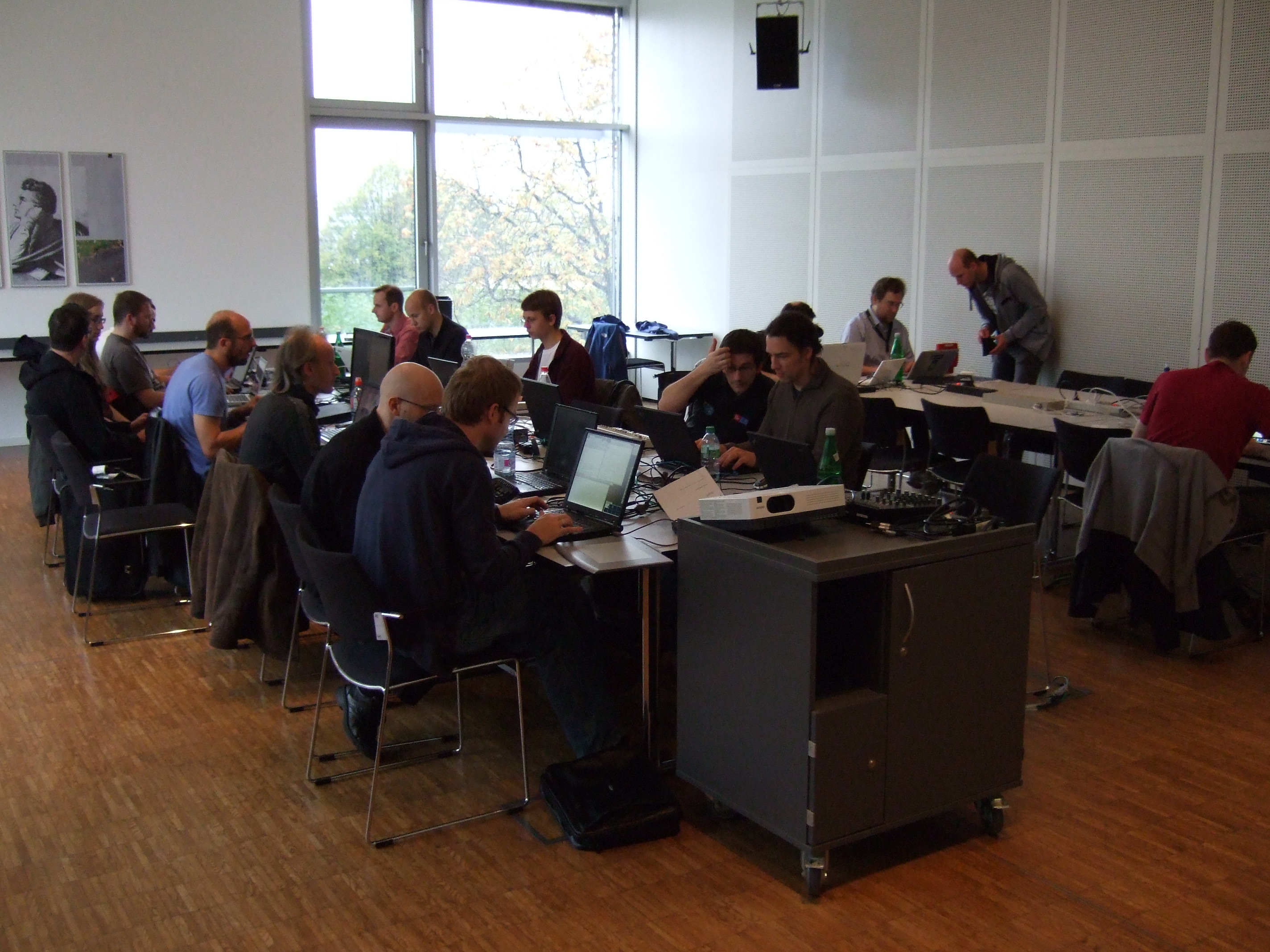After a while, Ithamar and I decided to go out for a bite, which turned out to be a two and a half hours walk around Düsseldorf with a 5mns stop to get a Schwarma wrap for dinner (quite tasty too). When we got back to the Hostel there were only François and Olivier in the room and after a bit of chatting I decided to call it a night. Ithamar of course, and as usual, stayed up all night working on the ARM port and drinking coke.