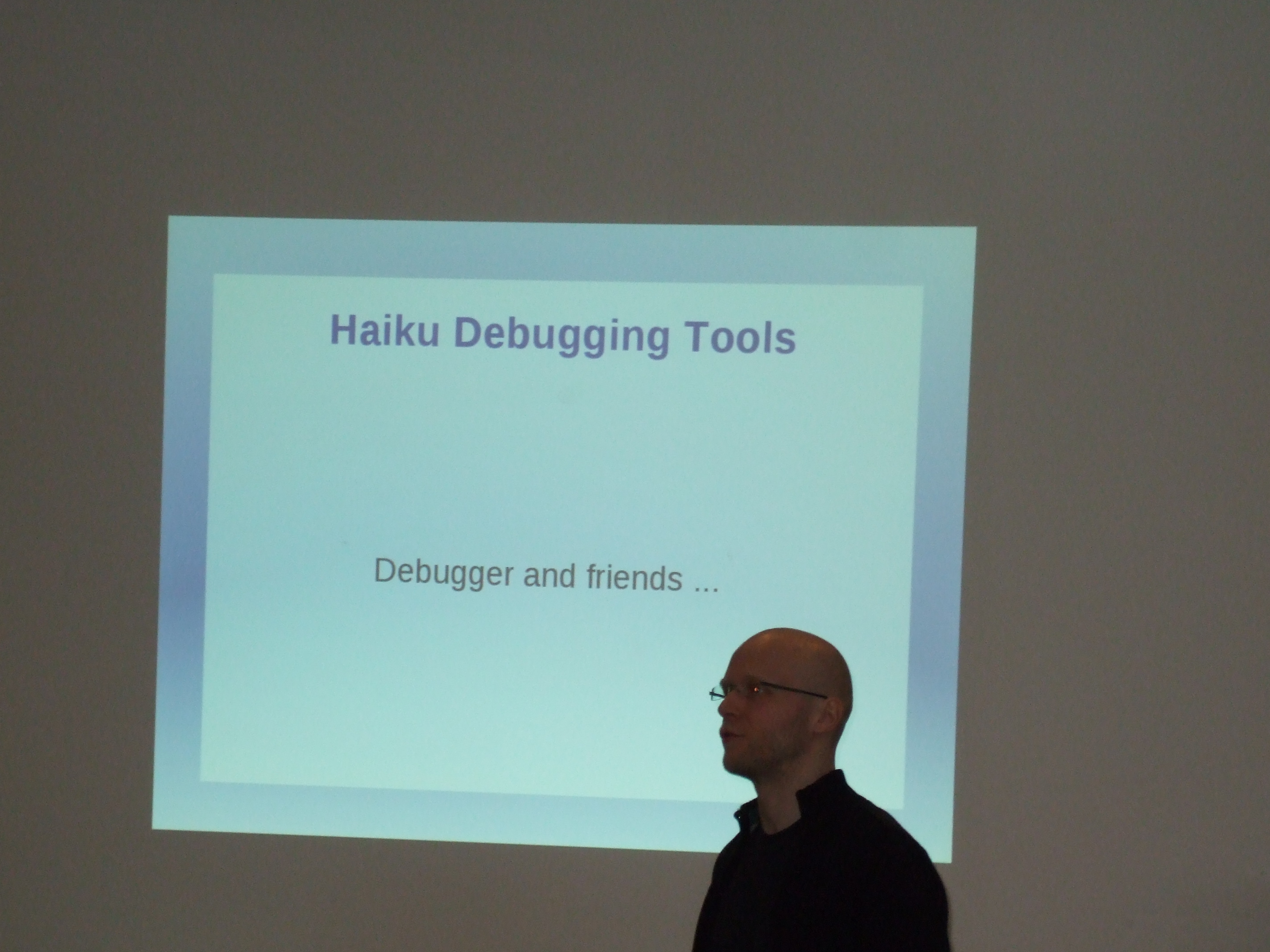 Sunday morning (again didn't got up in time for breakfast) saw Ingo's presentation on debugging software in Haiku, using “Debugger and friends...”. Although technical (and some of it just went over my head I must admit), it was definitely interesting, showing the tools currently available to Haiku developers, allowing them to improve their code/apps.