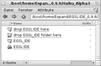 - Greife mit der Mouse das "EGSL_IDE" Verzeichnis und lasses es auf die Verknüpfung "drop EGSL_IDE folder here" fallen.