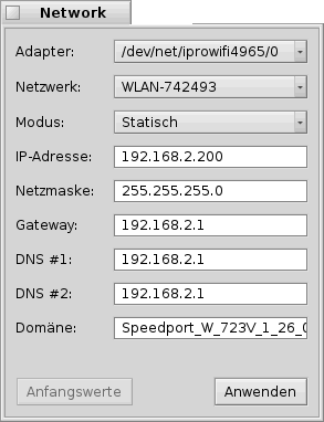 Im Feld "Network Name:" sollte der Name, also die SSID, des gewünschten Netzwerkes eingetragen sein. Über das Pulldown- Menü "Authentication:" könnt Ihr noch die Art der Verschlüsselung wählen und im Feld "Password:" müsst Ihr Euer WLan- Passwort eingeben. Diesen Dialog erhaltet Ihr ebenfalls wenn Ihr in der Liste aus "Bild 1" den Punkt "Netzwerkeinstellungen öffnen..." wählt und im nachfolgenden Fenster (siehe Bild), nachdem Ihr die entsprechenden Einstellungen gemacht hab, auf den Button "Anwenden" klickt.