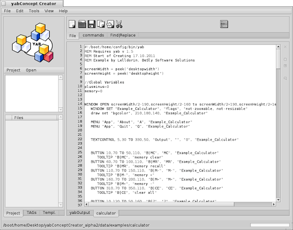 Das Beispiel- Programm, welches ich mit vielen Kommentaren versehen habe, sollte sich dabei ebenfalls von selbst erklären. Als Grundgerüst habe ich das "Basic Template" von yab 1.5 verwendet.
