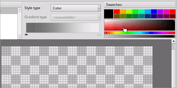 Nach dem wir den Style ausgewählt haben, klicken wir auf eines der beiden kleinen Dreiecke die unterhalb der vertikalen Farbreihe sind. Danach können wir eine Farbe in der Farbpalette auswählen.