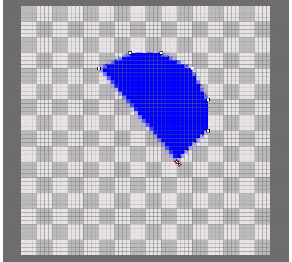 Um das gemalte Objekt zu verändern kannst Du nun einen der vorhandenen Pfadpunkte mit der Mouse auswählen (Linke Mousetaste gedrückt halten) und bewegen. Dabei wird der Pfad und die dazugehörigen Komponenten verändert.