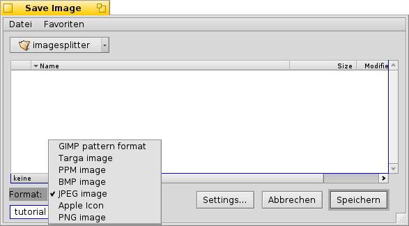 Hier können dann Dinge eingestellt werden, wie die Qualität des Bildes, Kompremierung und vieles mehr (ist Abhängig vom Dateiformat).