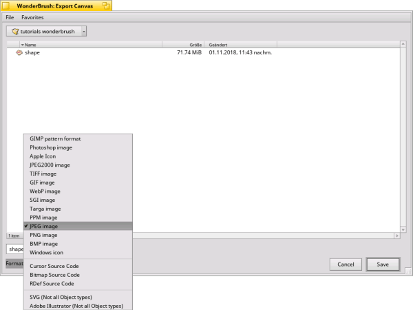 Nun kannst Du das Bild als WonderBrush Projekt speichern (Save As...) (Beinhaltet alle Layer) und/oder das Bild Exportieren.
