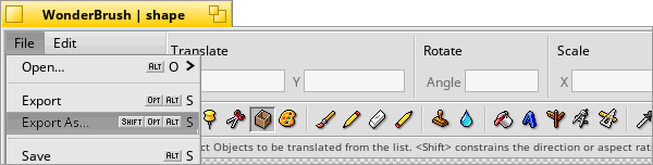 Zum Exportieren gehen wir auf das File-Menü und wählen dort Export As....