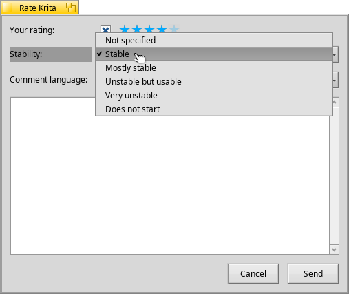 Danach wähle im Drop-Down Menü unter Stability deine Bewertung für die Lauffähigkeit des Programms aus.