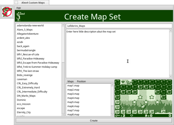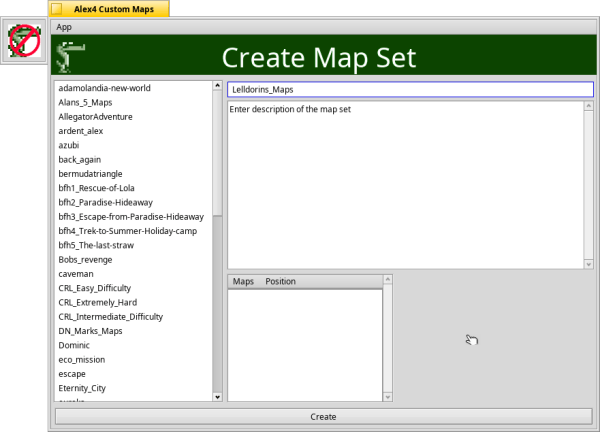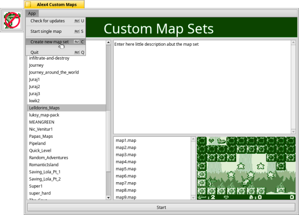 Um eine neue Zusammenstellung von Levels zu erstellen (z.B. die eigenen) gehe im App-Menü auf Create new map set.