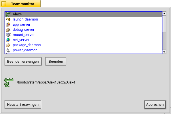 Sollte also Alex4 auch nach dessen Beendigung immer noch in der Tastleiste angezeigt werden, drücke auf die Schaltfläche mit dem Stop Alex Symbol.