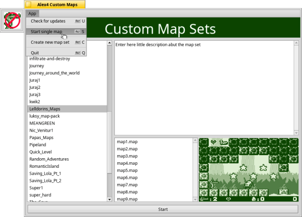 Möchtest du in einen anderen Level des Level-Sets in das Spiel einsteigen, wähle den entsprechenden Level in der Map-Auflistung aus und drücke auf Start.