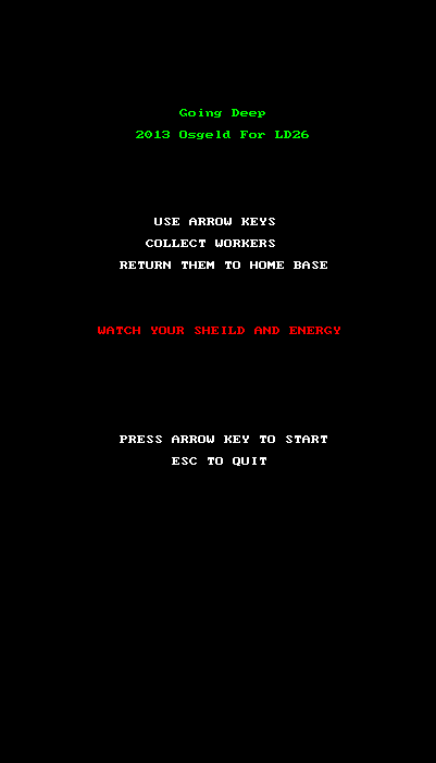Going Deep ist ein klassisches Fang und Flucht Spiel. Das Spiel wurde in EGSL von Osgeld geschrieben.