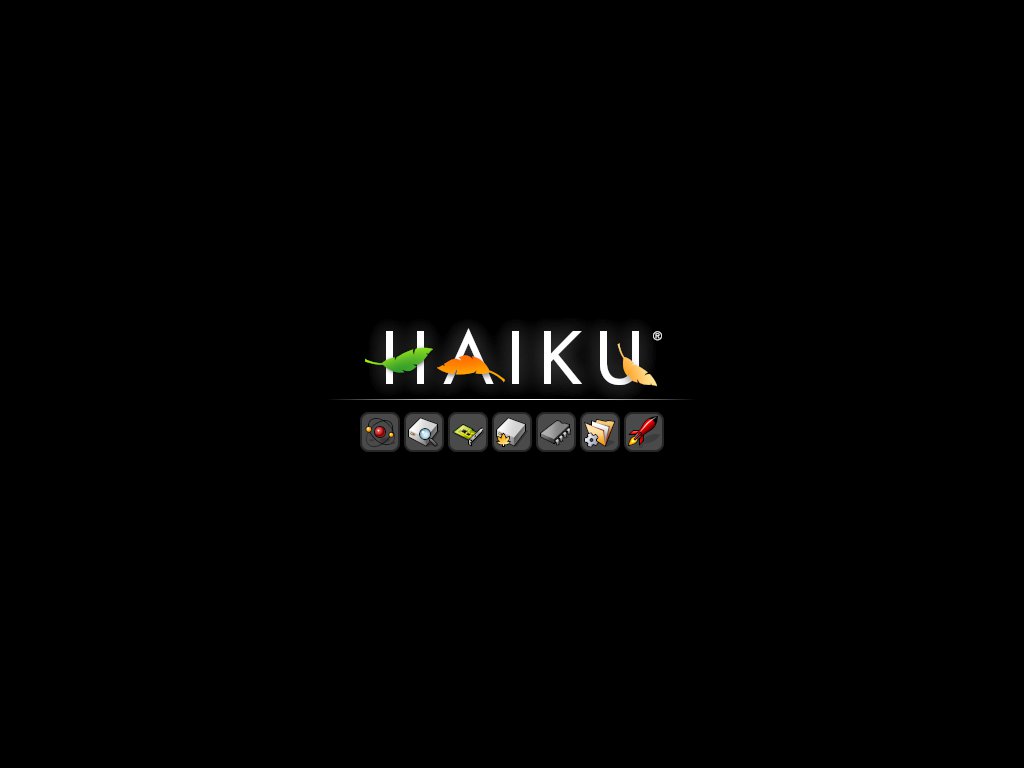 In meinem Fall gelang das Installieren von Haiku durch direktes Schreiben des Abbildes auf die Ersatzfestplatte des Laptops. Nach dem Einschalten begrüßt einen zu erst einmal der Bootsplash.
