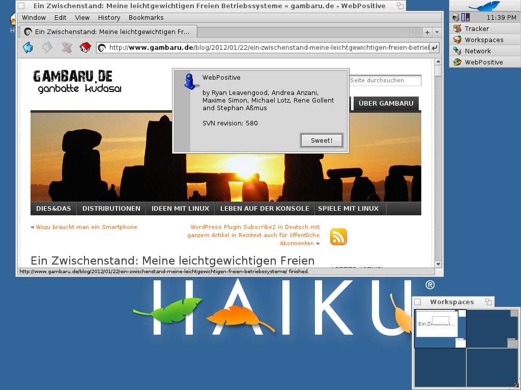 Als Haiku bezeichnet man eine kurze japanische Gedichtform, deren Ideale stille Kraft, Eleganz und Einfachheit auch das gleichnamige Betriebssystem Haiku teilt. Es gehört zu der Gruppe von Freien Betriebssystemen abseits von Linux, die ich mir näher anschauen wollte, da Haiku nicht nur ein freies und quelloffenes Betriebssytem ist, sondern sich durch die geringen Hardwareanforderungen auch als Alternative zu Linux auf älteren Computern eignet.