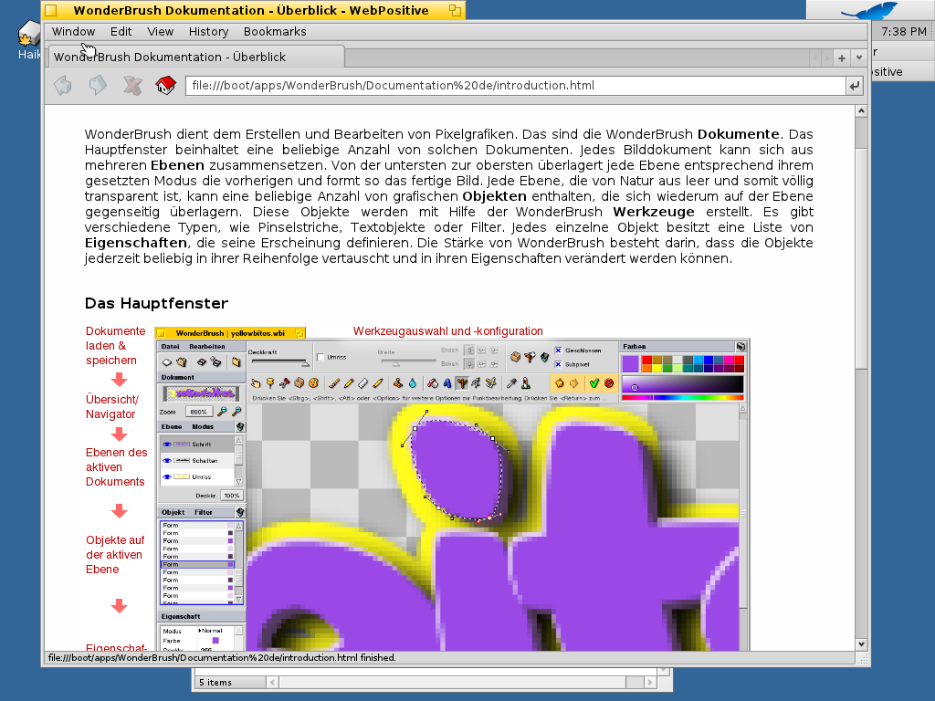 Die Bilder lassen sich z.B. mit Wonderbrush nachbearbeiten, eines der vielen weiteren Programme, die mit Haiku mitgeliefert werden. Der Philosophie entsprechend gibt es für jeden Anwendungsfall ein Programm. Mit den Applikationen lassen sich die wichtigsten Standardaufgaben erledigen, auch wenn ein Audiorecorder oder das TV-Programm noch auf der ToDo-Liste stehen.