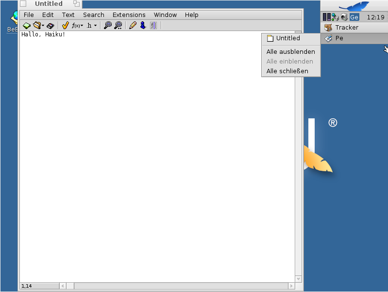 Haiku (OS) ist ein Frewilligenprojekt, das versucht, das eingestellte BeOS Betriebssystem nachzuprogrammieren und durch funktionale Erweiterungen zu ergänzen. Die letzte Version stammt vom 12. November 2012, die ich auch in diesem Test verwenden werde. Zum testen nutze ich eine virtuelle Umgebung. Haiku ist kein Linux basiertes Betriebssystem, es nutzt seinen eigenen Kernel.