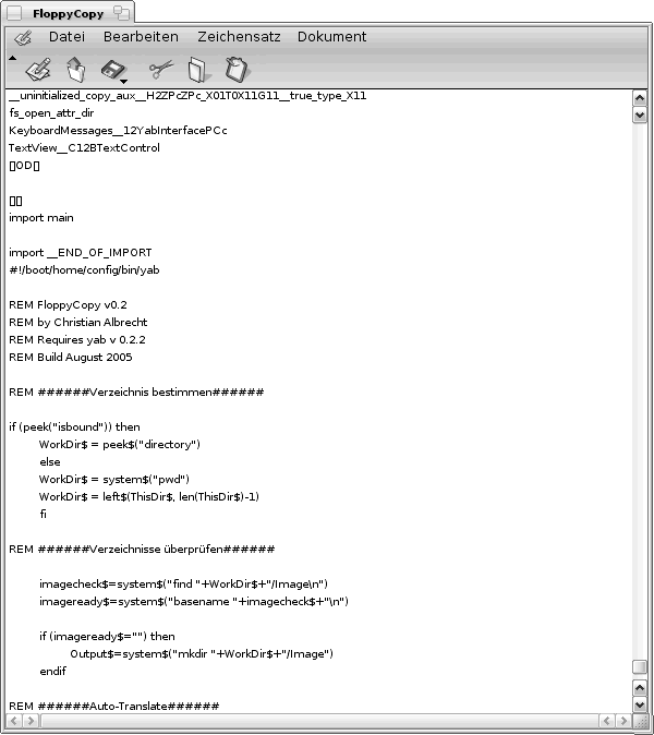 If you want to view a bound yab- Sourcecode you only need to open the bound program with a text editor. You don't can open the file with the menu option "open with", because the system does not give you that option. Open the text editor first and then open the binary using the file panel. How bigger the file, how longer the loading time.