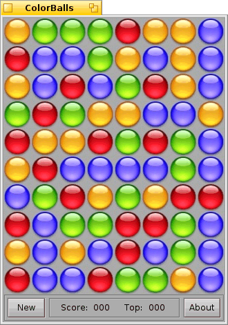 ColorBalls is a replica of the famous SameGame game for Haiku. The goal is to remove so many balls as possible from the playing field. Best is to remove all. You will see this is not so easy. For every removed ball you get points.