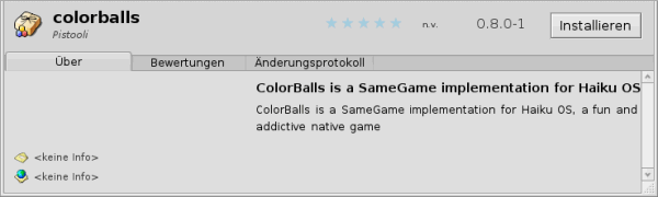 ColorBalls, is at the time of this tutorial, just as Haiku Package (HPKG) to relate. This can be loaded for example from BeSly Software Repository.