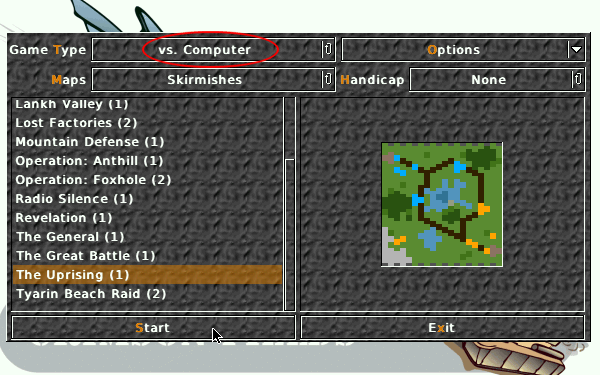 (If you have chosen the game type Network (Client) you need to play the map, the administrator of the server selected). |