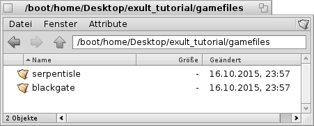 Have you installed Exult over our HPKG file, you can install the configuration file comfortable using a respective script. You can found the scripts at /boot/system/apps/exult_0.9.6. Choose here the appropriate script: Black Gate, Serpent Isle, or Black Gate und Serpent Isle. |