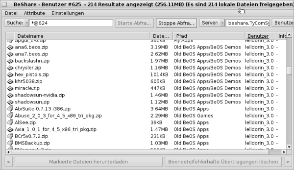 If you want to display your shared files for the seeker more clearer in BeShare, create directories in the Shared directory. These are then displayed in BeShare at path.