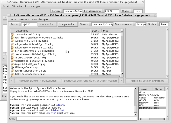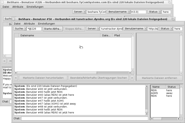 Now connect in the new open BeShare window with another server. Well, until this you are logged on two servers. Do you wish to connect with even more servers, simply open still a BeShare window again.