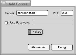 Here we select Add... and get a other new window. In this window we enter the IRC address and the port for it.