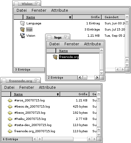 Enter at "Autoexec>" the channels you want to join automatically then vision starts. It is the same command you use to join a channel in the vision chat screen. Enter "/join #beos.de in order to connect to the #beos.de channel. If you want to join more then one channel at the same time enter the other in the next lines.