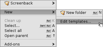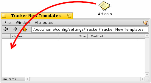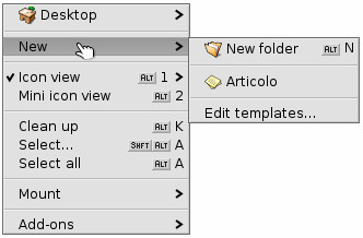 3. Muoviamo il documento che abbiamo salvato sul desktop con il nome "Articolo" nella cartella templates. Per aprirla clicchiamo con il tasto destro sul desktop e selezioniamo New --> Edit templates... questo aprirà la cartella dei template (che si trova in /boot/home/config/settings/Tracker/Tracker New Templates)