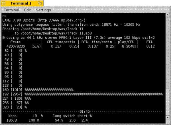 La linea in oggetto passa uno ad uno i file wav a LAME per la codifica in mp3.