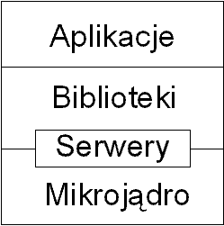 - mikrojądro, którego zadaniem jest pośredniczyć między sprzętem a warstwami wyższymi