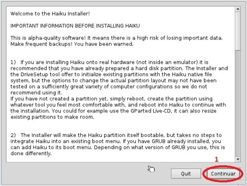 Vamos então agora começar a fazer a instalação do Haiku-OS dentro da máquina virtual.