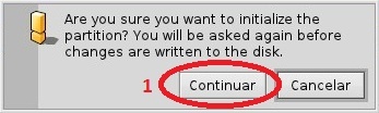 Etapa 18: Como estamos lidando com uma partição em um disco virtual que por sua vez está dentro da máquina virtual, podemos escolher escrever mudanças bastando clicar no botão "Aplicar alterações" (1).