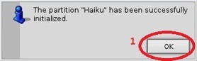 Etapa 19: Quando a tela abaixo aparecer, isso significará que a partição foi criada com sucesso e então clique em "Ok" (1).