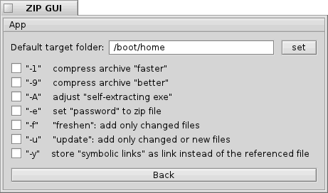 Long time i miss a GUI for the command line tool zip, that set a password to it. Then I take a near look at the zip command and finally get created a zip file with password. Since the idea to create a own GUI for the zip command are born.
