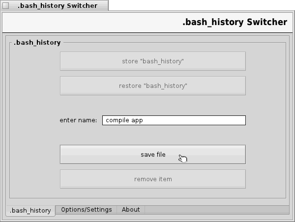 If this options "editing bash_history before storing" is enabled the program opens the current bash_history into an internal text editor before storing. Modify now the bash_history entries to your own desires and press on "store bash_histrory" to archive it.