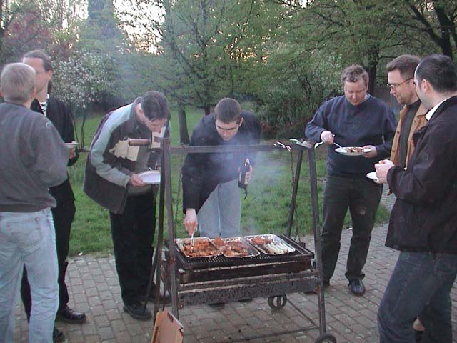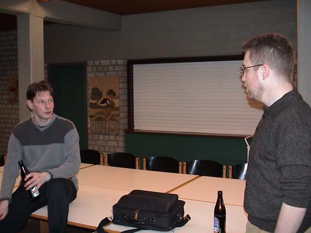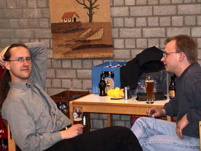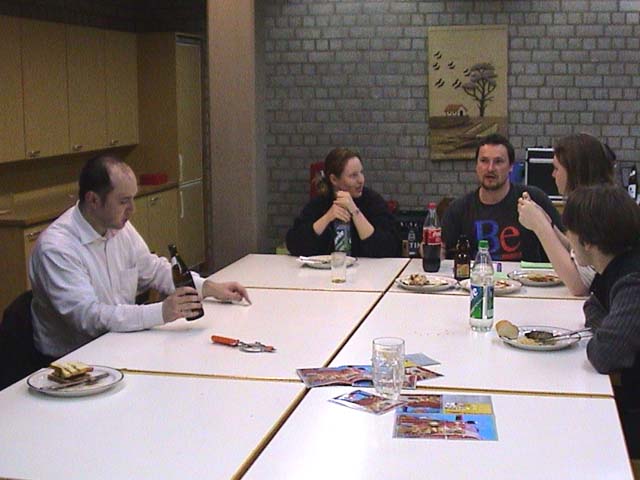 That night some people went off to watch a movie on the beamer (it was better than everyone being crammed around a PC) while Peter grabbed the video I had of a previous BeGeistert (005 uncut!) and made it into a quicktime then DVD movie. This took a while as the tape is an hour long and after recording it we discovered the recording mode of my camera was incompatible with his camera. It proved popular as a few people wanted copies.
