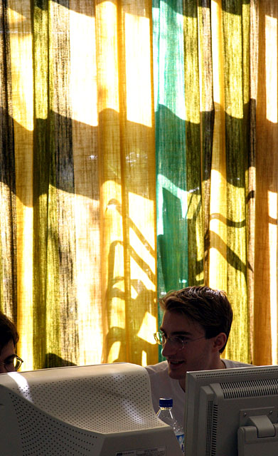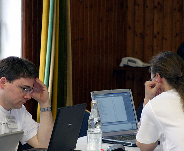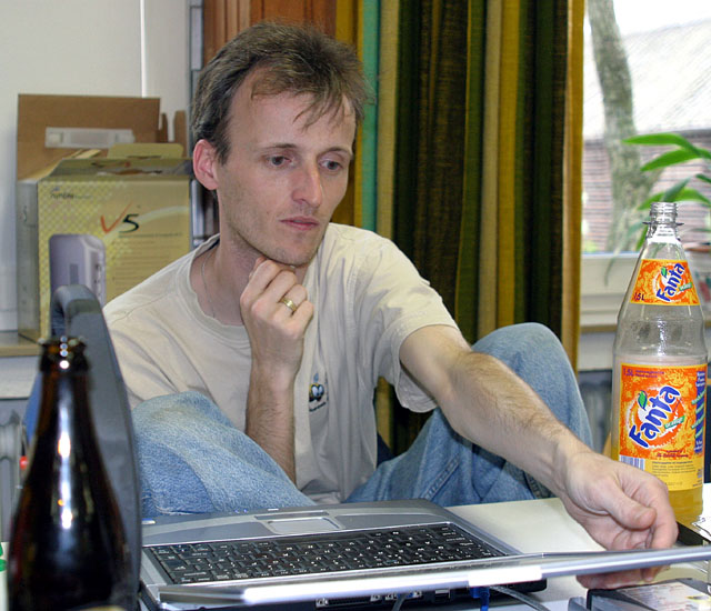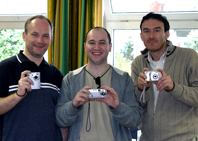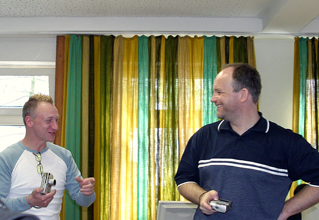 Of course with film cameras when you run out of film you just reload, no worries about needing to download your pictures or recharge your batteries. My CF card was nearly full on Saturday night but not having a computer with me I had to get the pictures off it. I knew Macs could recognised my camera without any special drivers so Peter and Nadia Stegemann allowed me to use their iBook to download the images. Then I had to find a way of keeping the images but their iBook didn't have a CD-Burner so I transferred the pictures to Marcus' PC, he didn't have a burner either but he did have a FTP server so I could then move the pictures to anywhere else. Eventually I found Francois had a burner so I got the pictures transferred again and finally burned to CD.