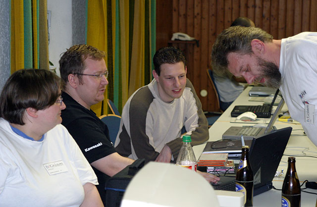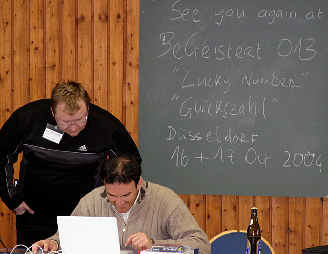 By physically getting people together you find they get on and discuss things much more rationally than on-line where the lack of emotional content means comments are very often taken differently from the way they are intended. Many developers attend BeGeistert, these are the real backbone of the community and are not the people spreading rumours. You have people from YellowTab, OpenBeOS and users and developers of various systems all in one room and it's a very productive and fun environment.