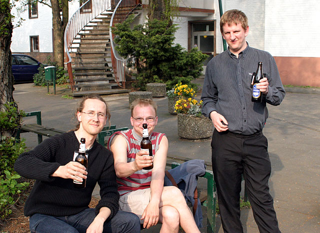 On Saturday night we did a copy of last year's visit to Lupo's Pizza restaurant in the centre of Dusseldorf. The atmosphere was very good and as last year the pizza was made quickly and was absolutely delicious. At the end we all had a small cake to celebrate Eddy's 18th birthday. Afterwards we were treated to a glass of Killepitsch by Eddy and Charlie, quite amusing seeing everyone's reaction after taking a sip - it's potent stuff!