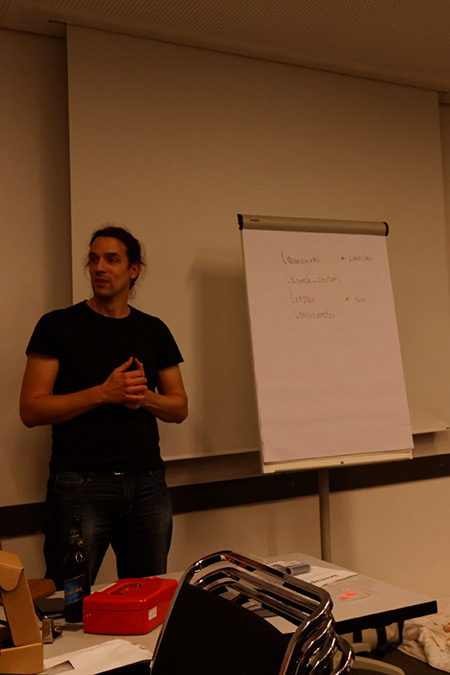 We had three talks planned for this BeGeistert, but our timetable was thwarted by the lack of a projector (which Germans wrongly call "Beamer", as Jonathan reminded us :)). Maybe one would be available in the evening, but after our dinner at a Spanish restaurant in the Altstadt and a traditional round of "Killepitsch" (a herbal liquor), nobody was really in the mood. So the talks were postponed to Sunday.