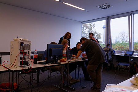 This time around I was the first one to arrive at the Hostel (yay!) and had to wait about 15mns before the next one got there, which turned out to be Axel. After another while, Charlie and François arrived and it turns out I was not the first one (boo!), since François arrived in DUS at... 6 in the morning, after taking the night train (and having his money stolen there, which sucks). As the evening went on, a few more attendees arrived and overall Friday was a very quiet evening, though it did see the first BG-originated-commit, from Axel if I recall correctly.