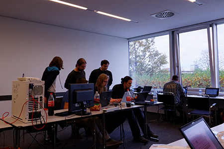 Puck was there the second year in a row, bringing Colin's desktop machine with him, which was left behind when Colin moved to New Zealand. (How is Colin these days?) Another new face to BeGeistert: Markus "TwoFX", one of our finalists in the Google Code-In 2014 and contributer of various patches since. He brought his girlfriend Leslie, who pleasantly doubled the number of attending females.