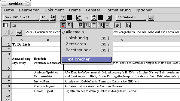 Um bei GobeProductive in einer Tabelle eine Zeile zu brechen, sprich den Text an die Größe der Tabelle anzupassen, gehe auf das Symbol für die horizontale Texteinstellung (Align Horizontally).
