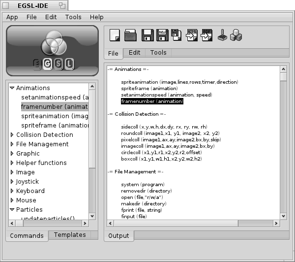 Der Lua Interpreter beinhaltet viele Befehle die ein Programmieren von 2D Spielen einfach machen. EGSL hat ein Build System über welches man selbstausführende Dateien erstellen kann, dieses beinhaltet die EGSL Programmdatei und den Quellkode des Spiels.