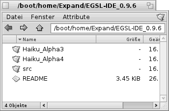 - Du kannst außerdem ein geöffnetes Dokument als Script speichern. Dies erstellt ein selbstausführendes Script deines Dokumentes (dazu muss allerdings die EGSL Programmdatei unter /boot/home/config/bin installiert sein).